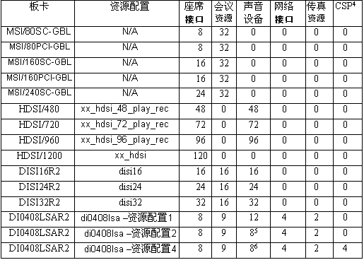 2.HDSI/1200不提供相關的聲音資源。D40408LSAR2為專用語音資源或路由聲音資源提供資源配置。