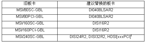 下面的表列出了本文檔中討論過的停產(chǎn)了的板卡和建議作為替換的板卡