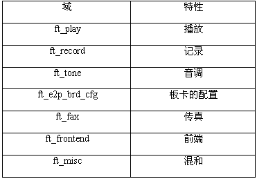 語音API函數(shù)。在語音API的頭文件dxxxlib.h中定義了用FEATURE_TABLE數(shù)據(jù)結(jié)構(gòu)中的某個參數(shù)代表的特性。FEATURE_TABLE結(jié)構(gòu)中的ft_tone字段包括一個位掩碼,它指出了一個特定的語音設備支持的音調(diào)特性。