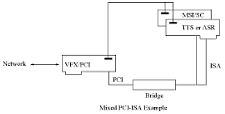 VFX/PCI可以操作在同時包含有PCI和ISA接口的機箱中,VFX/PCI使用H.100連接器,簡化了與下一代的CT總線的連接。VFX/PCI可以使用