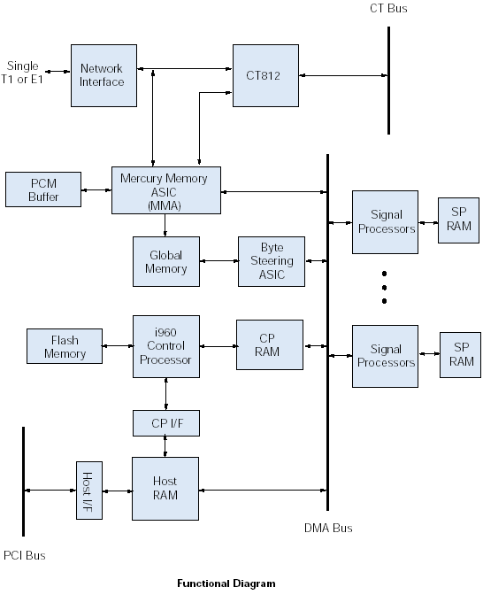 DMVF2401TIPCIU以及DMVF3001E1PCIU板卡將24個T-1或者30個E-1語音處理線和14400b/S(v.17)傳真功能進(jìn)行了綁定,該傳真功能可以具有傳真機(jī)的所有基本功能,甚至更多,包括傳送和接收多個文件、輪詢功能、廣播功能以及重復(fù)輪詢。該種板卡采用了雙重處理器的結(jié)構(gòu),這種結(jié)構(gòu)組合了DSP的信號處理功能和通用控制微處理器的策略決定、數(shù)據(jù)移動功能。板卡為以下資源提供了呼叫處理的能力:從電話網(wǎng)傳來的T-1或者E-1電話信號;共享通過CT