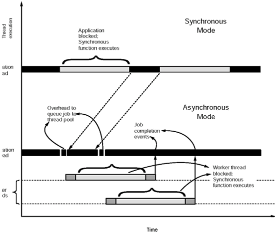 如前所述,使用額外的線(xiàn)程可以讓主應(yīng)用線(xiàn)程不必去等待同步函數(shù)的執(zhí)行。也就是說(shuō),應(yīng)用程序可以繼續(xù)處理它的邏輯,而不會(huì)被執(zhí)行中的同步函數(shù)阻塞。